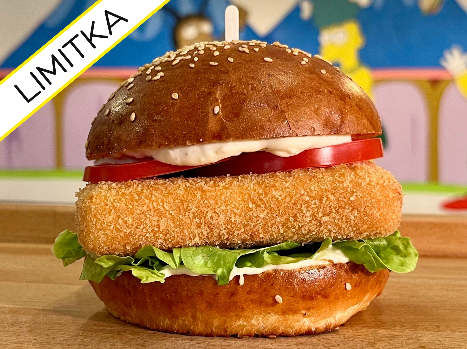 Smažený sýr Gouda v křupavé strouhance s bylinkovým máslem, ledový salát, rajče, tatarská omáčka, máslová bulka